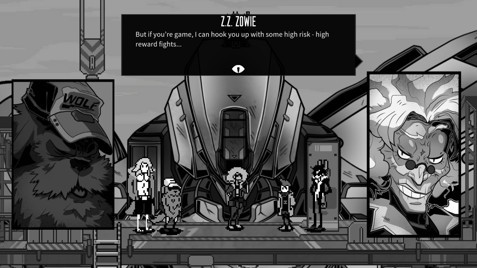 The narrative is as engaging as it is thought-provoking. As the story unfolds, what starts as a simple mission to earn money gradually transforms into a deeper exploration of the characters’ troubled pasts and the existential crossroads at which they now find themselves. Each member of the team brings a unique set of skills and personal history that enrich the narrative. Dog-mechanic Duque is the master of Cowboy’s repairs and upgrades, ensuring that every battle reinforces the blend of strategy and mechanical prowess. Mecha pilot Knife Leopard adds raw competence behind the controls, while Dominic Shade, the exiled former Yakuza, finds himself navigating not just the arena but the vibrant and eccentric streets of Rain City.