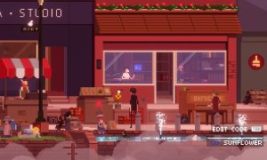 The game boasts a rich cast of charming characters, all brought to life by full English voice acting. As you interact with these memorable personalities, you'll also delve into atmospheric, pixel-by-pixel drawn environments that capture the creative energy and struggle of indie game development.