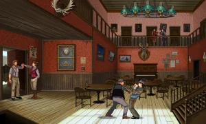Rosewater’s rotoscoped animations give every character a lifelike edge, from tense standoffs to quieter moments around campfires. The 1280×720 presentation feels polished without demanding top-tier hardware. Meanwhile, Mark Benis’s score weaves perfectly between twangy frontier themes and suspenseful motifs, while professional voice performances breathe authenticity into every line.