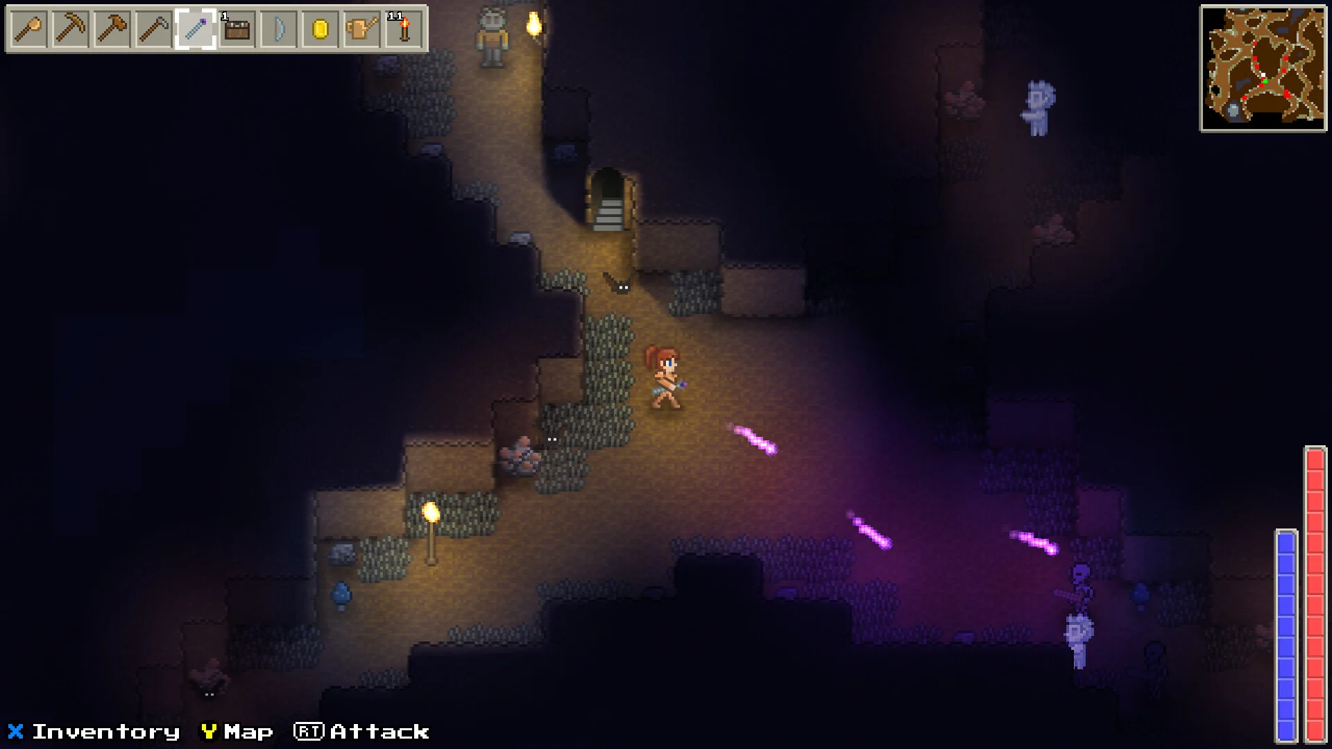 - Exploration and dungeon-crawling: Roam diverse biomes, uncover hidden caves and tackle deadly dungeons to mine ores, gather rare resources, recover lost treasures, defeat foes and claim unique loot.