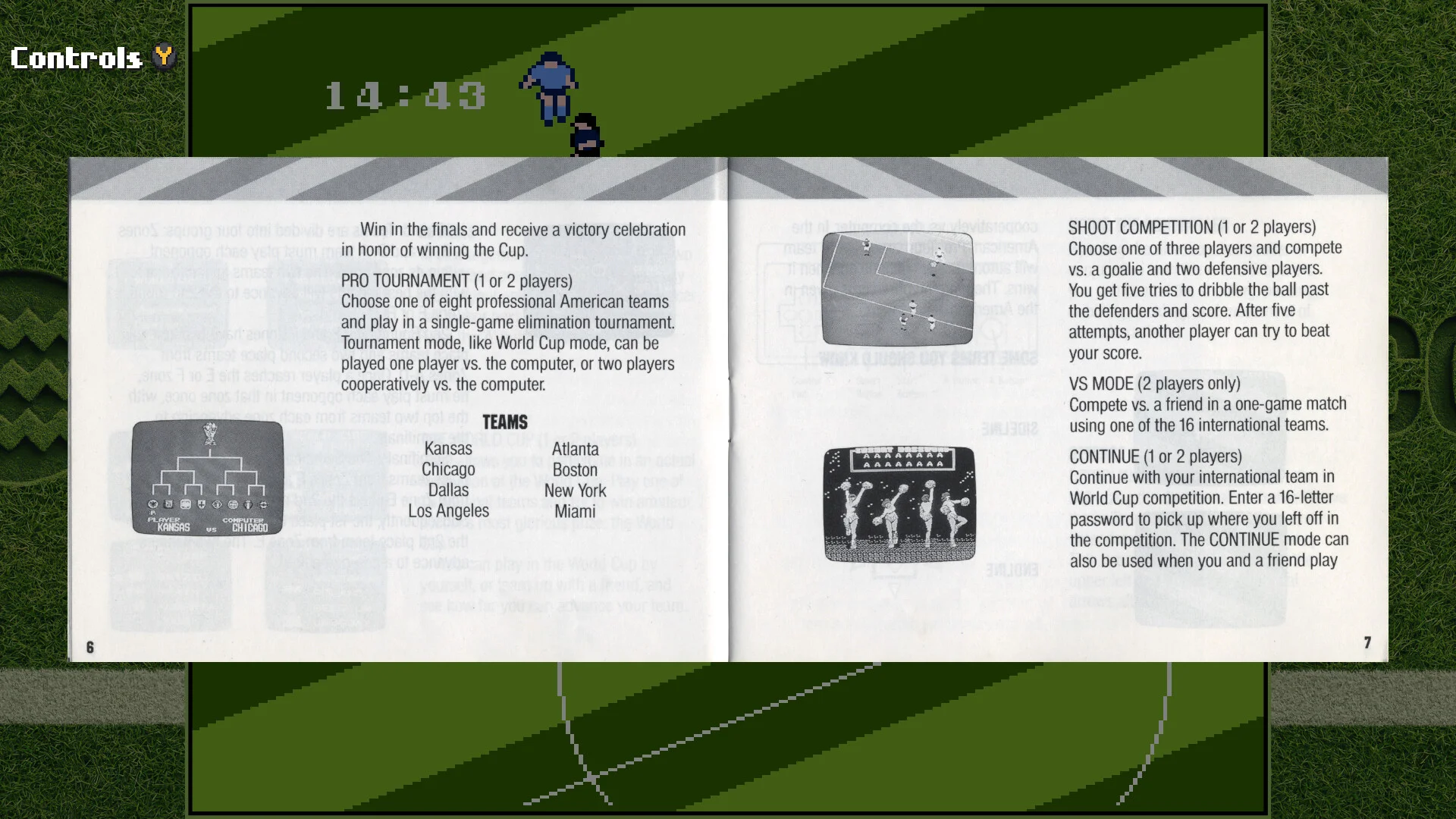 - SNES-specific features: multiple play perspectives, radar/full‑field view, instant replays, and special moves (kick, block, head, bicycle kick, pass, steal)