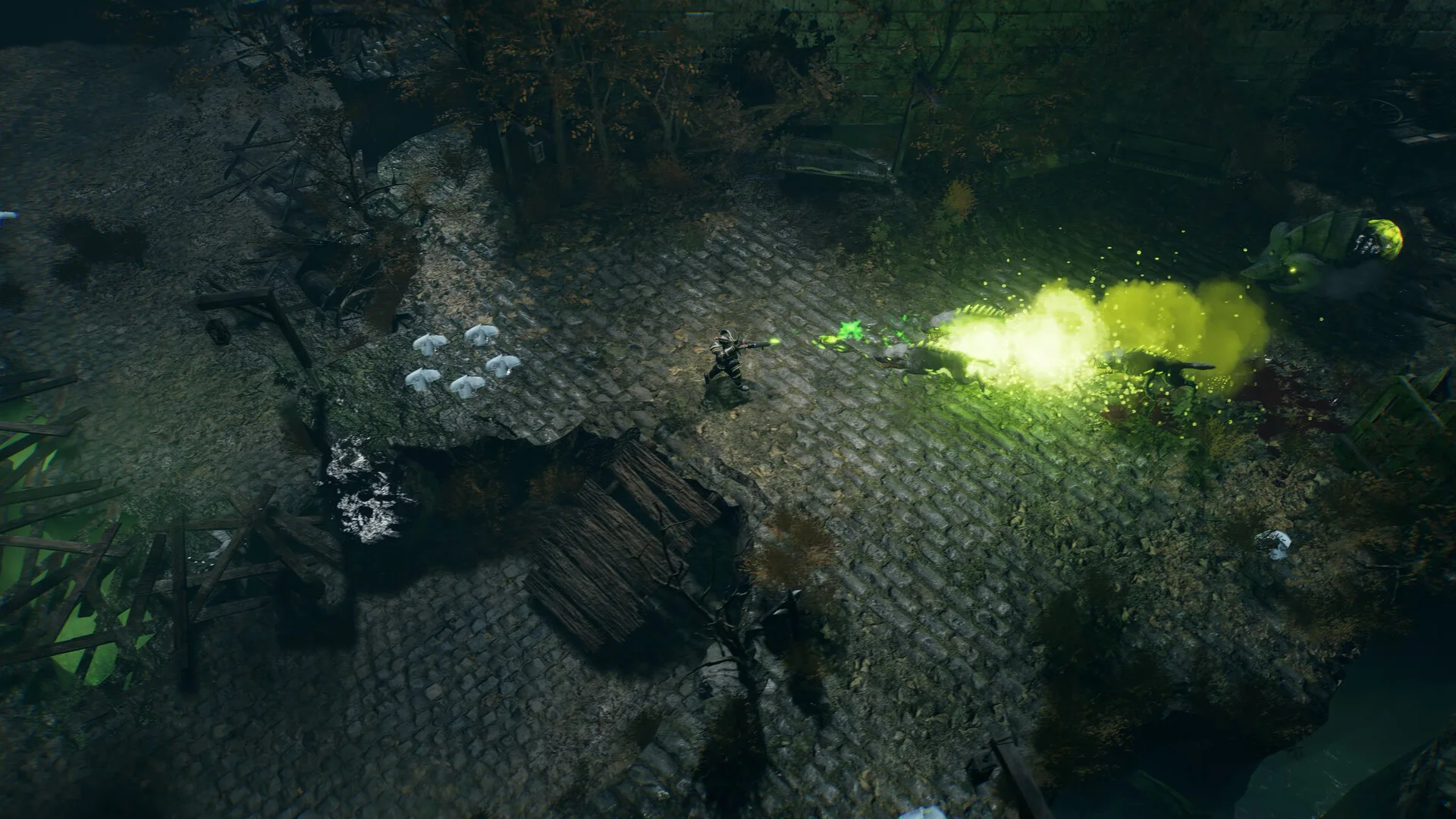 - Fast, twin-stick isometric combat with tight, responsive controls