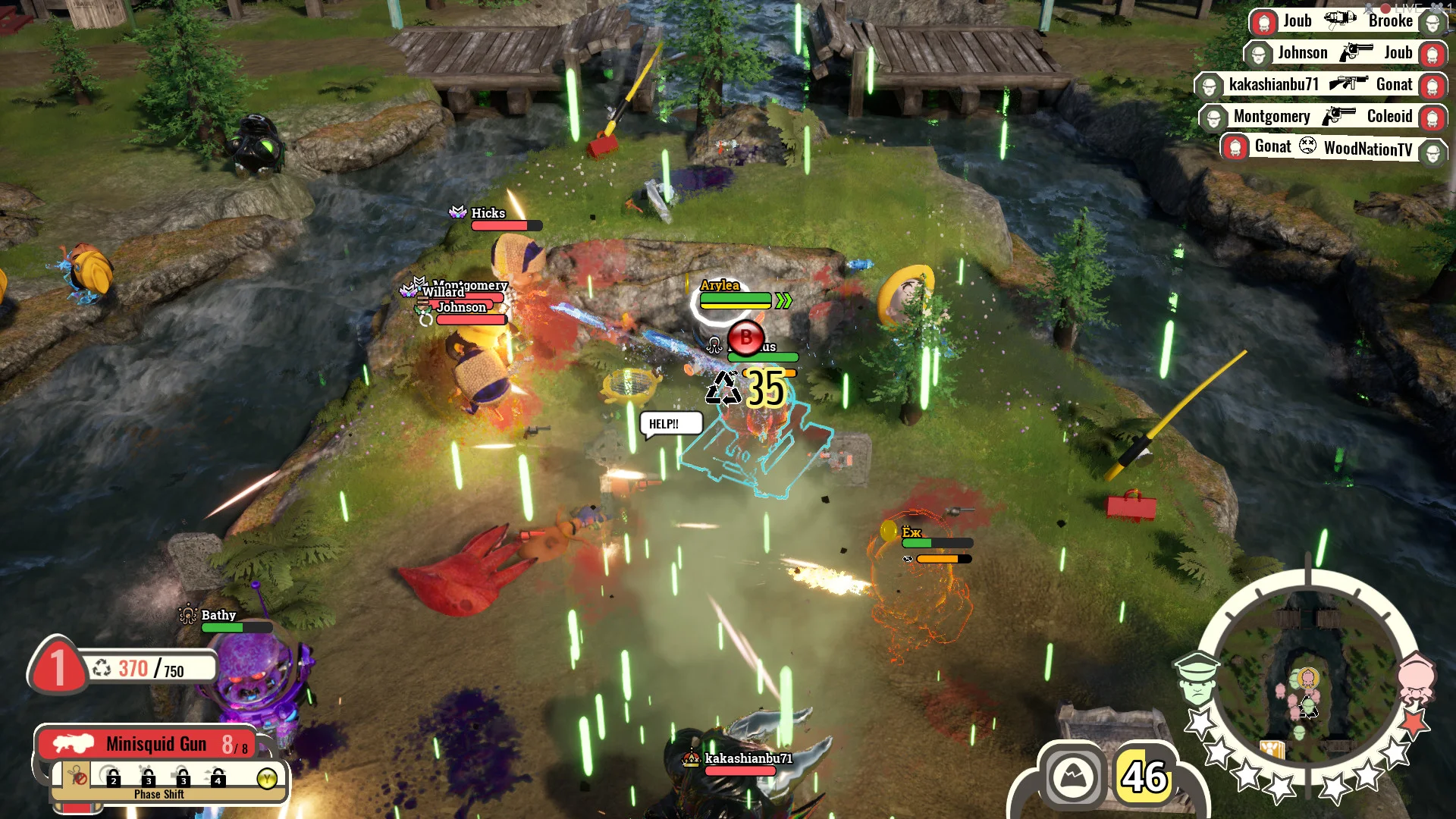- Humans wield shotguns, rocket launchers, grenades and dynamite; Squids use deadly energy rays and can deploy massive Crawler Tanks.