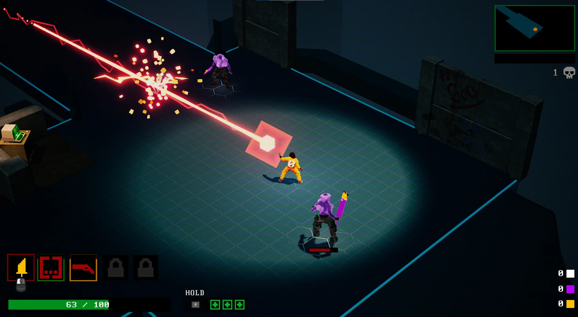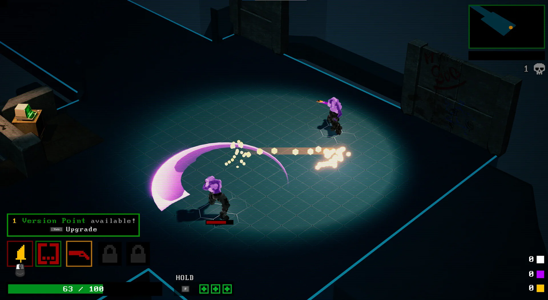 Unguided is a stylish roguelite slasher that blends stamina-based melee combat with Tron-like neon visuals and 1980s sci‑fi atmosphere and music. You play an inmate trapped inside the PIT - a digital prison designed to keep "immortal" consciousnesses locked away. Your only escape is to reach the remote server of an abandoned human cloning laboratory, upload yourself into a blank body, and take revenge on those who framed you.