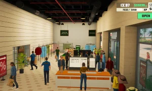 - Staff management (cashiers and restockers) and storage upgrades add management depth