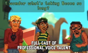 Visually, Wildwood Down mixes hand-drawn frame-by-frame pixel art with 3D elements and cinematic camera work, backed by a "Surf Rock Noir" score recorded with live instruments and a full cast of voice actors. The result is a rich, atmospheric coastal world with 3D sound design and polished lighting that gives classic point-and-click vibes a fresh look.