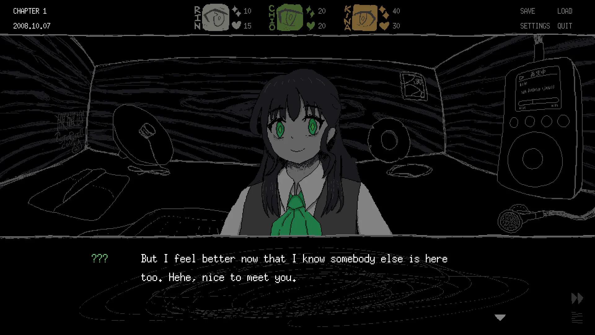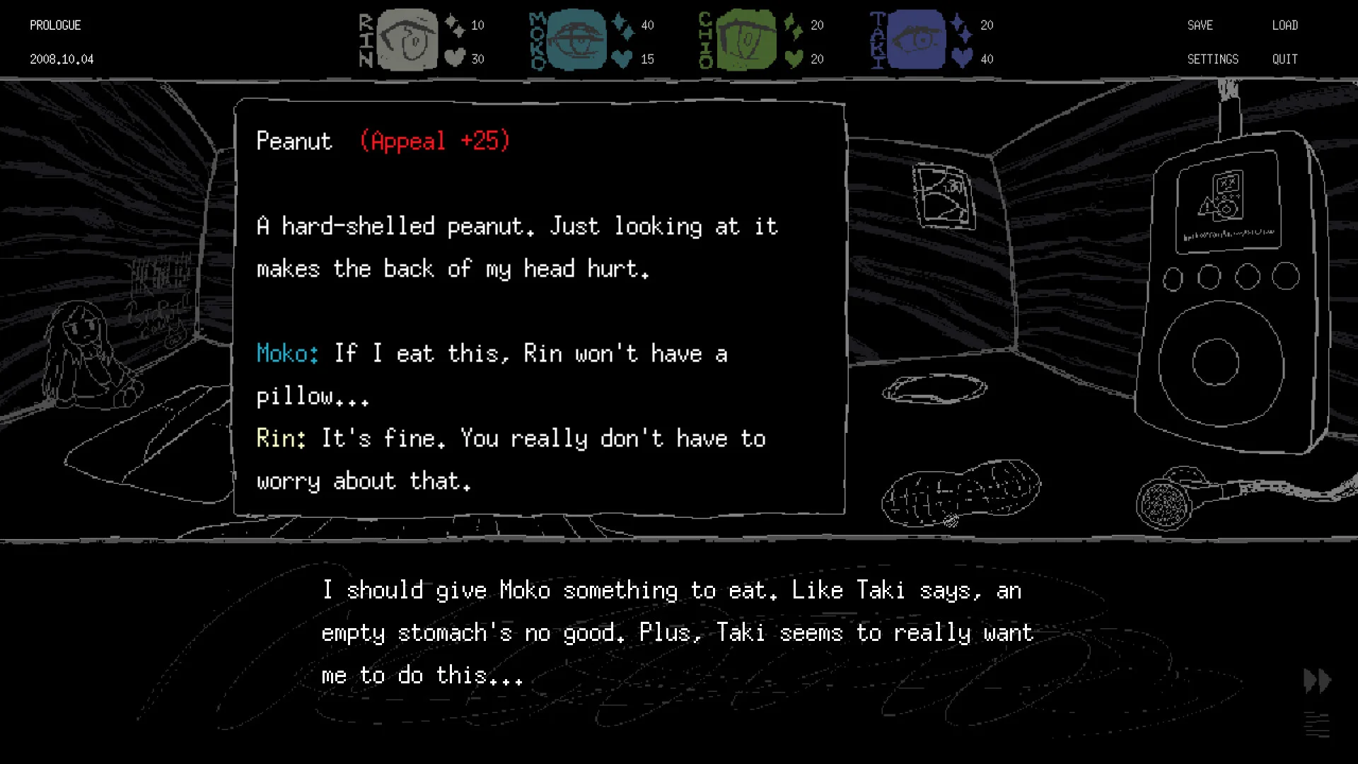Daytime play is a resource-and-stat management puzzle. Each miniature character has Health and Appeal stats; you hand out items to influence those values and try to keep the group alive while also pushing toward Saeko’s strange wishes. Nights are quieter but far more consequential-single binary responses can steer the story and sometimes lead to abrupt, brutal endings. The result is a game that constantly forces hard decisions and makes you live with the consequences.