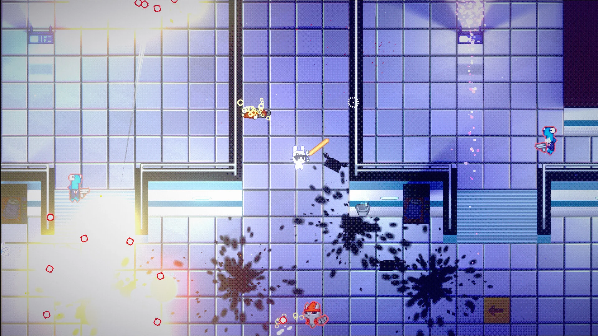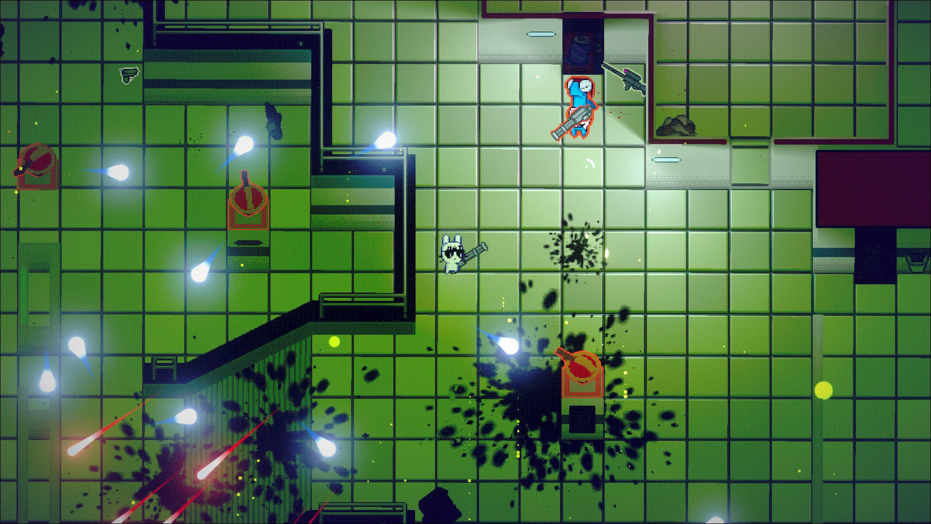 Gameplay is simple to pick up and brutally satisfying: put on your hat, swing your bat, and grab every gun in sight. The arsenal is gloriously excessive - pistols, shotguns, chainsaws, grenade launchers, mine layers, flamethrowers, and more - which lets you mix playstyles on the fly. Combat plays out like manic arcade mayhem: twin-stick movement with heavy emphasis on dodging, strafing, and making the most of whatever you loot from the battlefield.