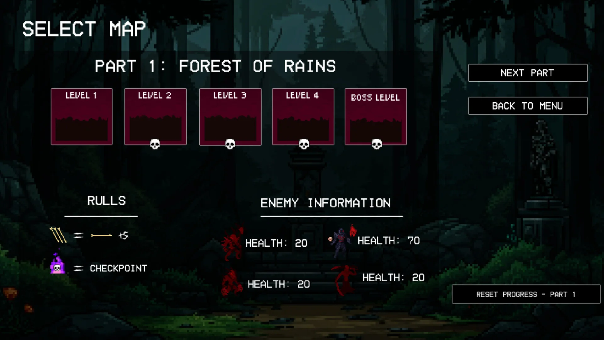 - Pixel art visuals with atmospheric, dark-fantasy backgrounds