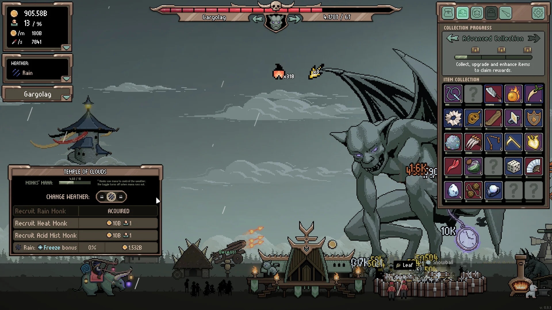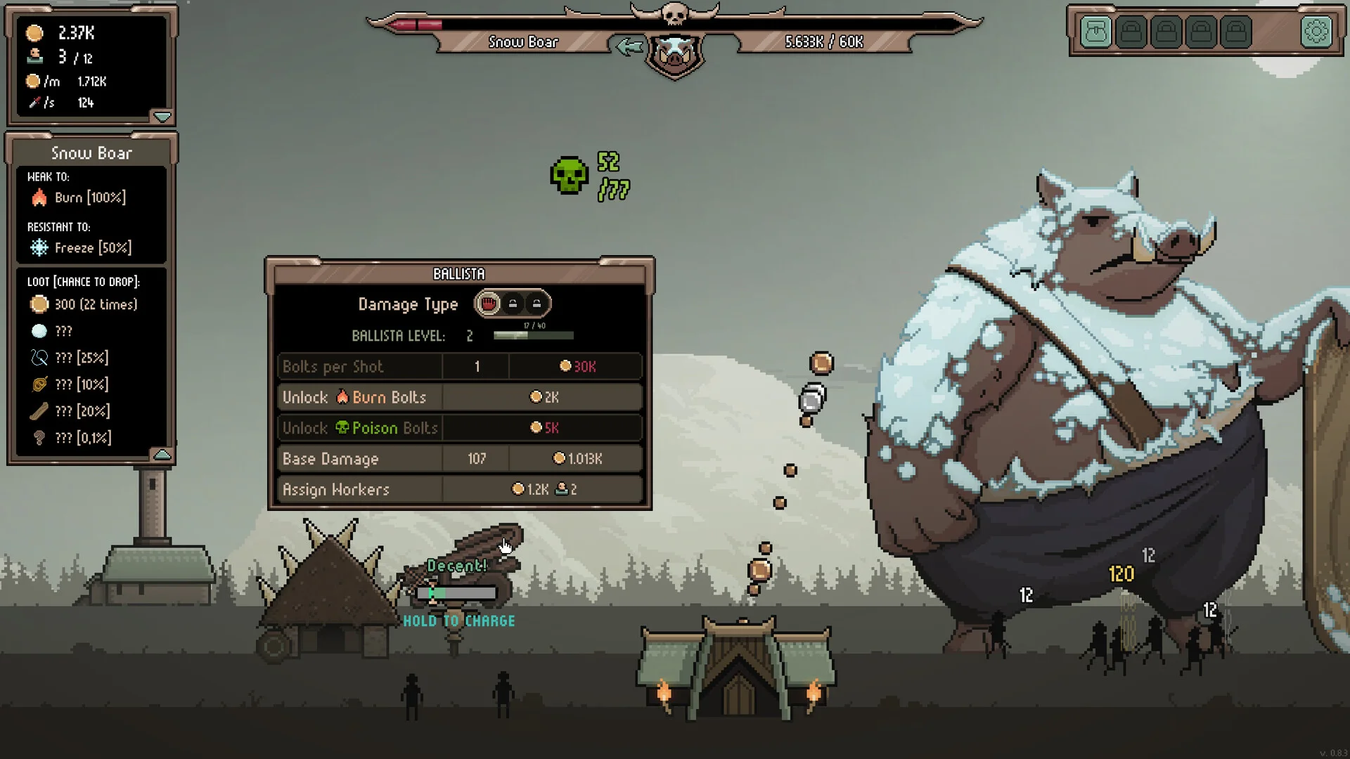 What stands out is the emphasis on memorable boss fights rather than just abstract numbers. Enemies feel like events you prepare for, not background noise, and the visual payoff of giants melting away gives each victory weight. The game also layers in strategic choices through town management, resource balancing, and a branching upgrade system that gradually opens more mechanics instead of dumping everything on you at once.