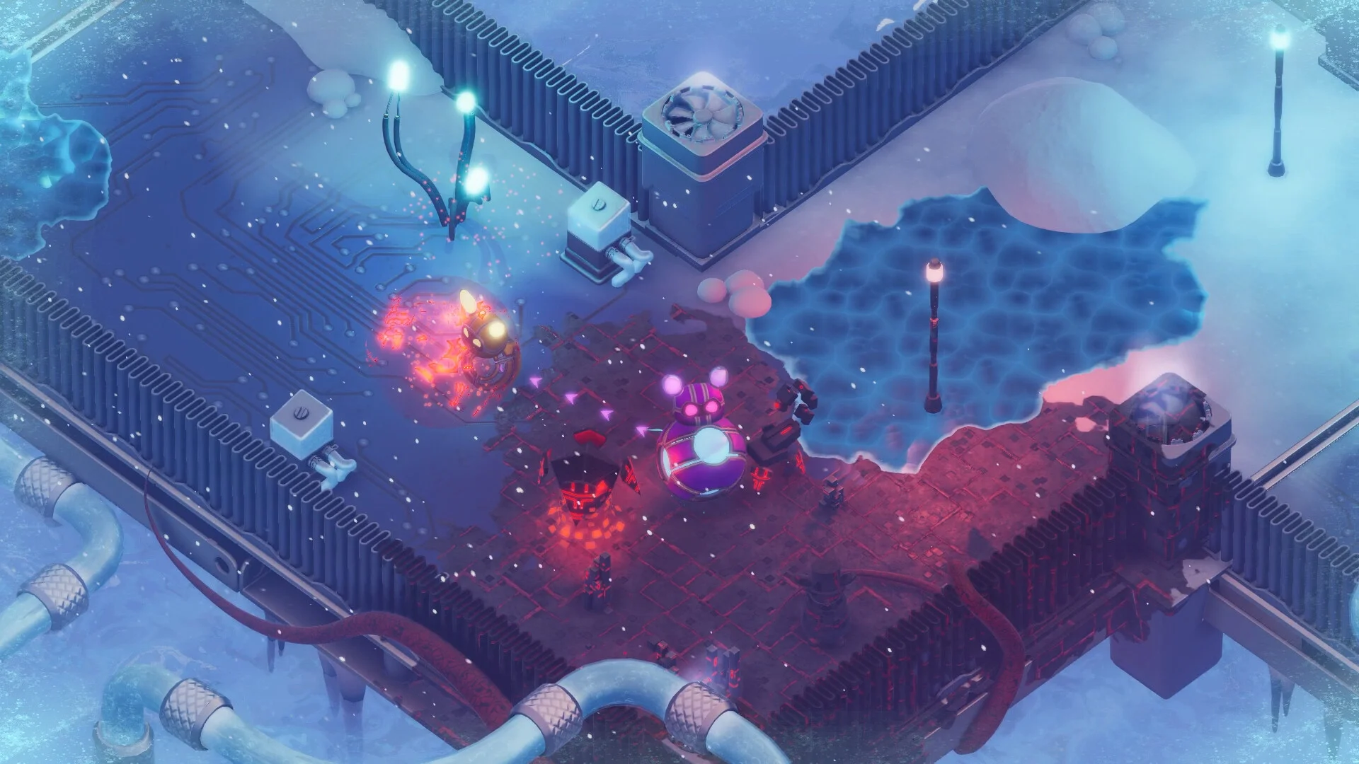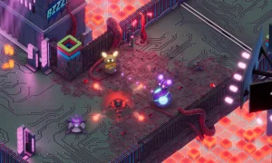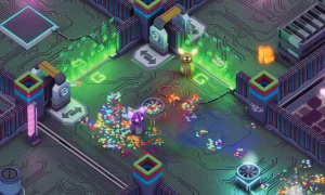 Explore a variety of neon-lit environments-from sprawling motherboard circuits and winding CPU corridors to strange, organic "data biomes"-each with its own enemies, secrets, and puzzle types. The game is built for flexible play: team up online, share a classic split-screen session, or tackle challenges solo, with full controller support and a fast-paced, accessible feel.