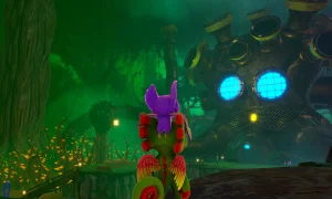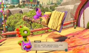 Yooka-Replaylee is two games in one: find hidden arcade cabinets and take control of Rextro in his own isometric platformer to earn extra rewards. Collect the new currency, Q.U.I.D.S, dropped by Capital B’s bungling minions and spend them at Vendi’s sentient vending machine or tackle Coinelius’ mini‑challenges. The adventurers’ notebook helps you track everything, bookmarks let you fast‑travel between areas, and hints can be bought to help you hunt down all 300 magical Pagies.