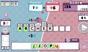 Gameplay is simple to pick up: assemble words from a limited set of letters, each worth different points. Your aim is to craft high-value words, chain combos with multipliers, and unlock bonuses to meet target scores across 10 increasingly challenging levels. You have a limited number of attempts per level, but you can reroll your letters when luck runs out.