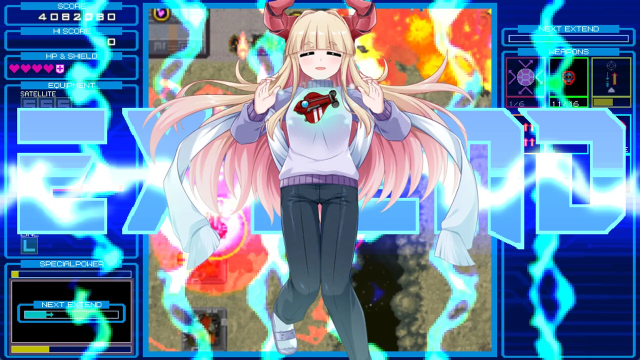The setting is light and pulpy: in 2050 the Sepulch Space Archipelago is overrun by the Randomax Pirates, and a shipping company called ARGO EXPRESS offers an odd bargain-use their misrouted stock to take back the islands. You play as one of three distinct women pilots: Cosmi (Blue Cosmic), the hot-blooded cop; Urara (URARARA★Recital SP), the towering cyber-idol who literally is her ship; and Dariha (Barra 35T), the aristocratic savior in ragged finery. Each character has her own ship traits and a unique stage and ending, which encourages replaying to see all the story beats.