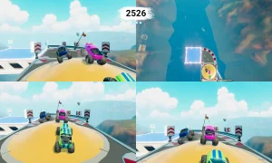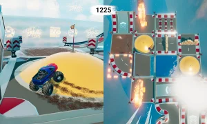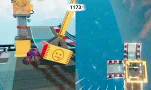 Play face-to-face in local couch co-op, jump into single-player, or connect with someone online. The game supports 2-player online multiplayer and up to 4-player local split-screen so you can grab controllers and cause mayhem with friends or strangers. A big part of the appeal is customization: unlock parts, design your own vehicle in the editor, and craft custom tracks with the road editor to create unique and ridiculous race experiences.