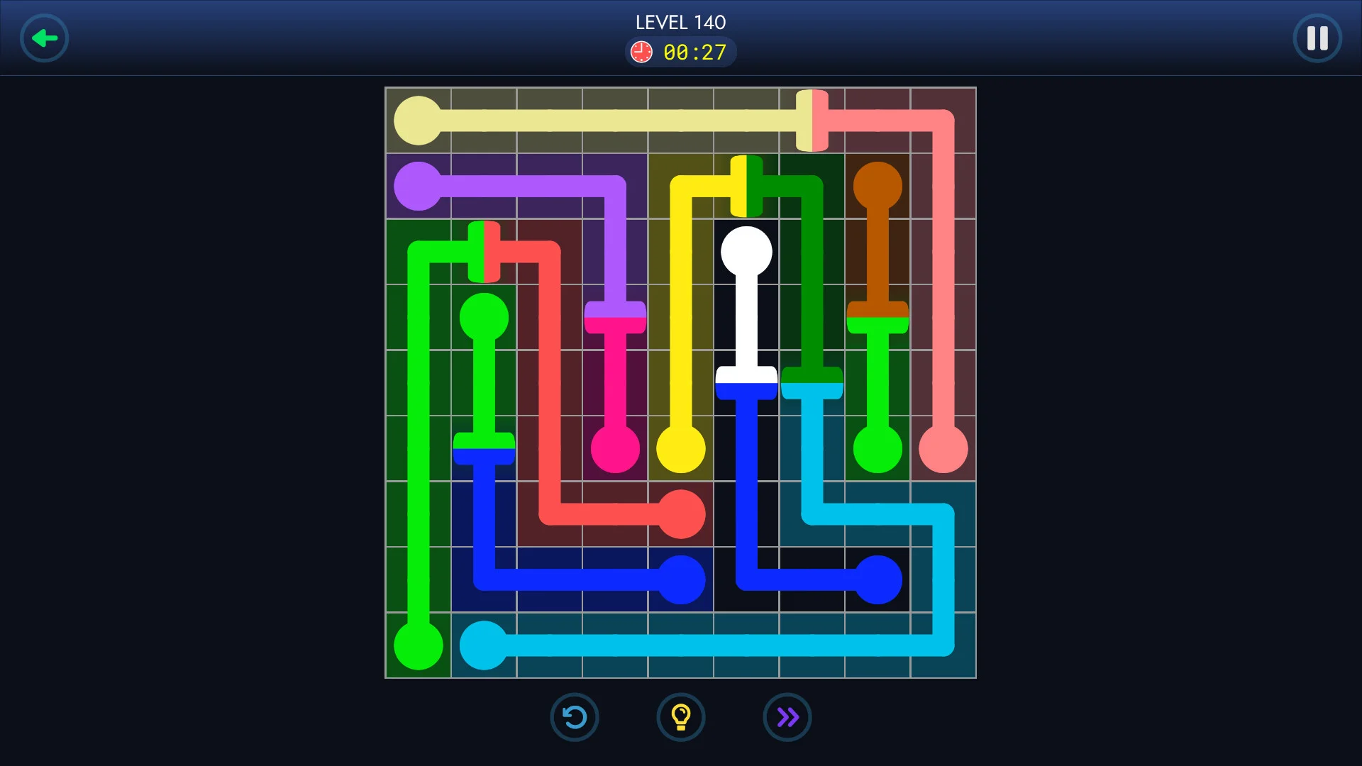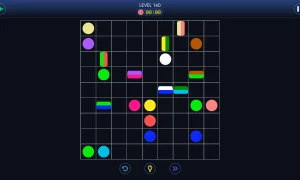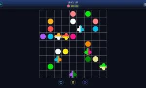 Difficulty ramps up gradually, introducing trickier layouts and mechanics as you progress. If you get stuck, you can use Hints (each one links a pair of dots) to help solve challenging puzzles. Several visual themes are available so you can play in the style you prefer.