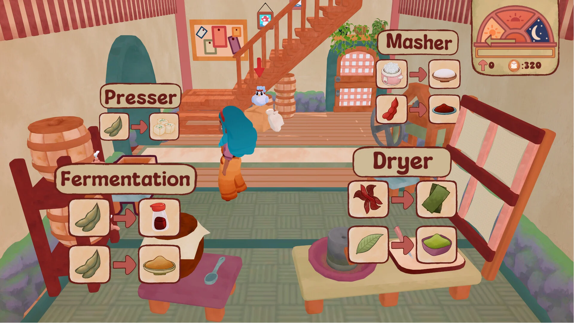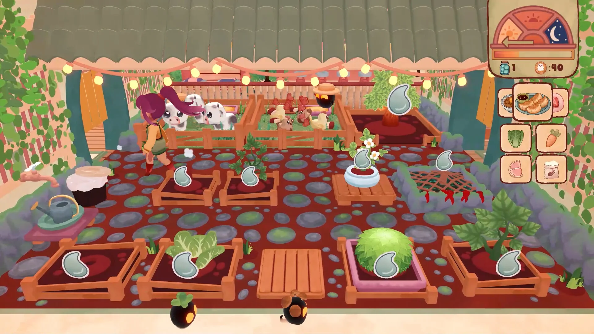 Grow and harvest crops, look after cows and chickens for milk and eggs, and play short mini-games to process special ingredients - for example, ferment soybeans for soy sauce or dry tea leaves to make matcha. Spend your earnings wisely to buy plants, decorations, and upgrades that restore and expand your shop, improve the kitchen, and unlock helpful features.