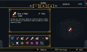 - Hub system to buy characters, runes, armors, rings and empowered skills