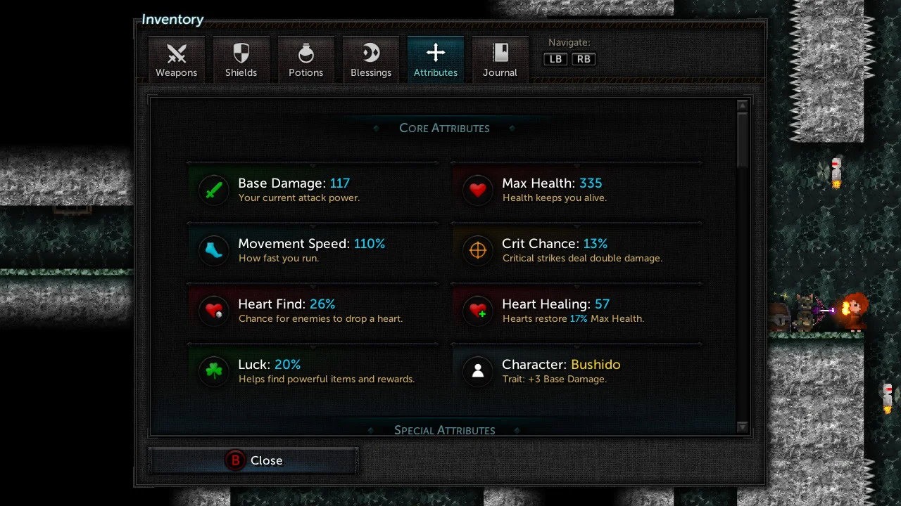 Combat leans on timing and weapon mastery-raise your shield, pick the right tool for the job, and learn each weapon’s quirks. Rooms, enemies, items and modifiers are procedurally generated, so no two runs feel the same. Difficulty ramps as you progress (more enemies per room), and deeper runs reward you with higher rarity loot and better item tiers. Healing options include potions, hearts found in rooms, or visiting Lady Tallowmere herself, and permanent unlocks expand your starting arsenal the farther you get.