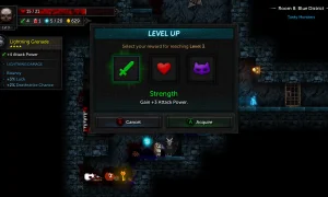 Tallowmere 2 drops you into a darkly whimsical dungeon run where Lady Tallowmere’s kittens are behaving oddly and the rituals must go on. The core loop is simple and satisfying: clear a room of enemies, find the key, advance to the next room and try to push your high score based on how far you get. Along the way you level up and equip weapons, shields, blessings and potions that change how your character plays.