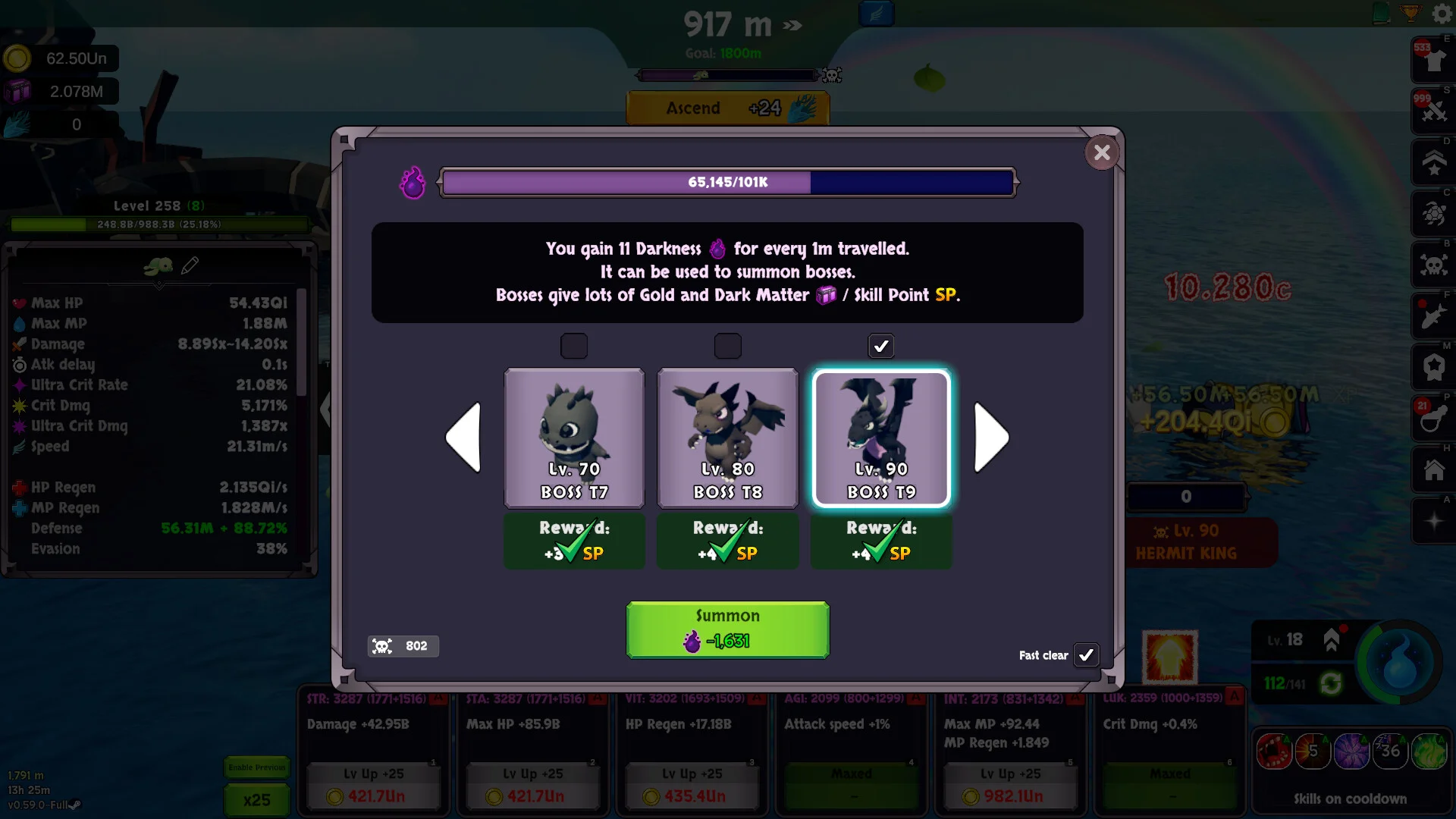 Character growth is flexible. You invest in Strength, Agility, Intelligence, or Vitality and spend skill points to upgrade abilities for both your turtle and companions, shaping a playstyle that suits you. Hunting for legendary loot, summoning bosses to earn gear, and breaking down unwanted items into upgrade materials create satisfying long-term goals and raise the odds of scoring rare items.