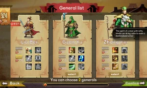 Gameplay focuses on tactical depth and replayability. You pick one of three factions, choose a leading general and equipment, and assemble a deck from generals, troops, formations and spells. Combat is PvE card-battler action where unit roles and card synergies matter: infantry break defenses and deal heavy damage, cavalry manipulate the deck and bolster your general, and ranged units strike repeatedly and apply status effects. As you advance on the map you decide which territories to enter, collecting city points and rewards that let you upgrade your deck and army. Random events and nine territory types ensure each playthrough feels different, while experience and money let you level up and recruit stronger forces-including rare, legendary generals if you’re fortunate.