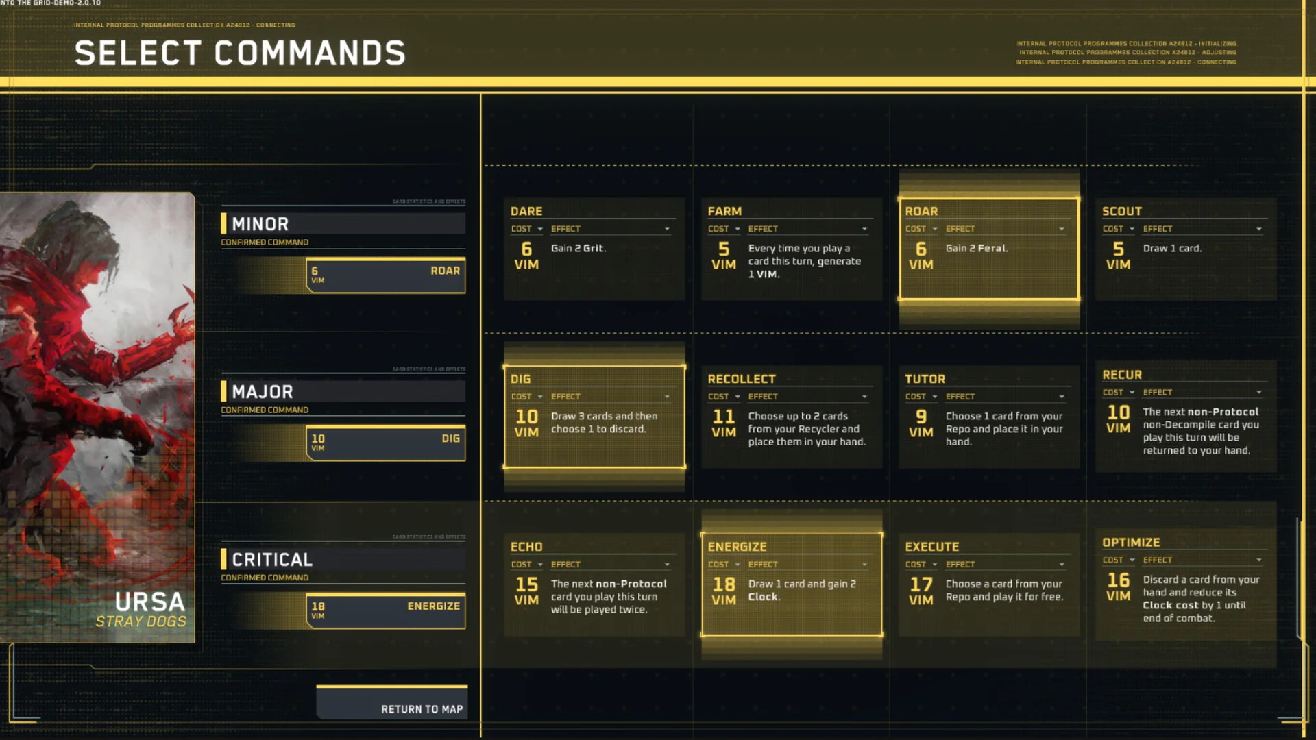 - Commands: powerful, unlockable skills that consume VIM and require strategic synergy with your deck
