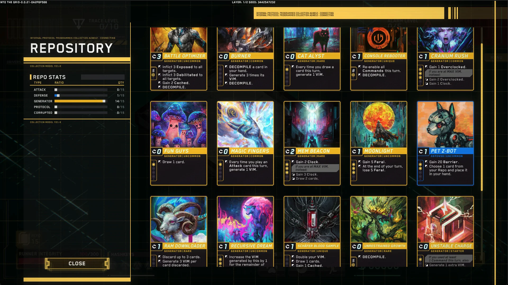- The Repo: acquire, upgrade, and remove Programs to optimize your deck