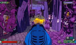 As you fight through the city, you’ll gather resources and improve your weapons with blueprints that carry over between runs, giving you a sense of long-term progression even as each attempt begins anew. Your mobile base, the DOM bus, serves as both a place to upgrade yourself and a vehicle you can drive around the city, offering a unique way to navigate the hostile streets.